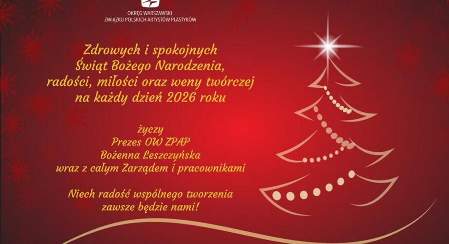 Zdrowych i spokojnychŚwiąt Bożego Narodzenia, mnóstwa radości i miłościoraz weny twórczej na każdy dzień 2026 roku życzy Prezes OW ZPAPBożenna Leszczyńska wraz z całym Zarządem i pracownikami Niech radość wspólnego tworzeniazawsze będzie z nami!