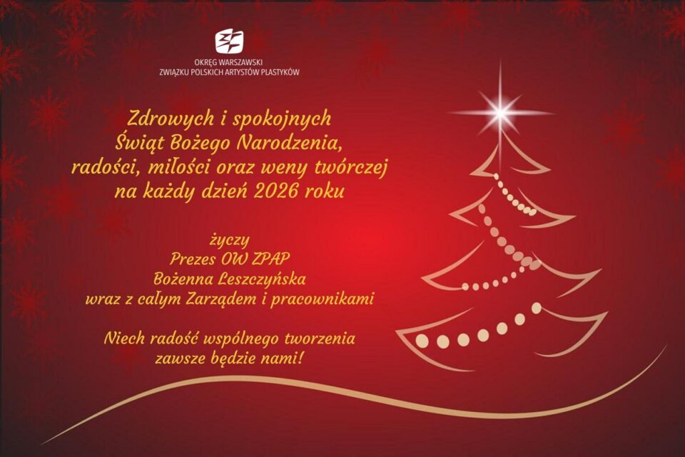 Okręg Warszawski Związku Polskich Artystów Plastykówserdecznie zaprasza na bożonarodzeniowe zakupy dzieł sztukiw czasie dwudniowego Kiermaszu Świątecznego w Domu Artysty Plastykaw sobotę i niedzielę13 i 14 grudnia 2025 roku w godz. 11:00-17:00