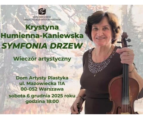 Krystyna Humienna-KaniewskaSymfonia drzew Wieczór artystyczny Galeria DAP1 Domu Artysty Plastyka OW ZPAP przy ul. Mazowieckiej 11A w Warszawiesobota 6 grudnia