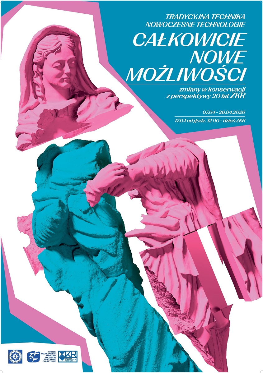 CAŁKIEM NOWE MOŻLIWOŚCI TRADYCYJNA TECHNIKA – NOWOCZESNE TECHNOLOGIE Zmiany w konserwacji z perspektywy 20 lat ZKR Wystawa w ramach 30 Spotkań Konserwatorskich “Sztuka Konserwacji” Sekcji Konserwacji OW ZPAP Galerie DAP1 i DAP2 | Dom Artysty Plastyka | OW ZPAP | ul. Mazowiecka 11A, 00-052 Warszawa Wystawa czynna w dniach od czwartku 9 kwietnia do niedzieli 26 kwietnia 2026 roku