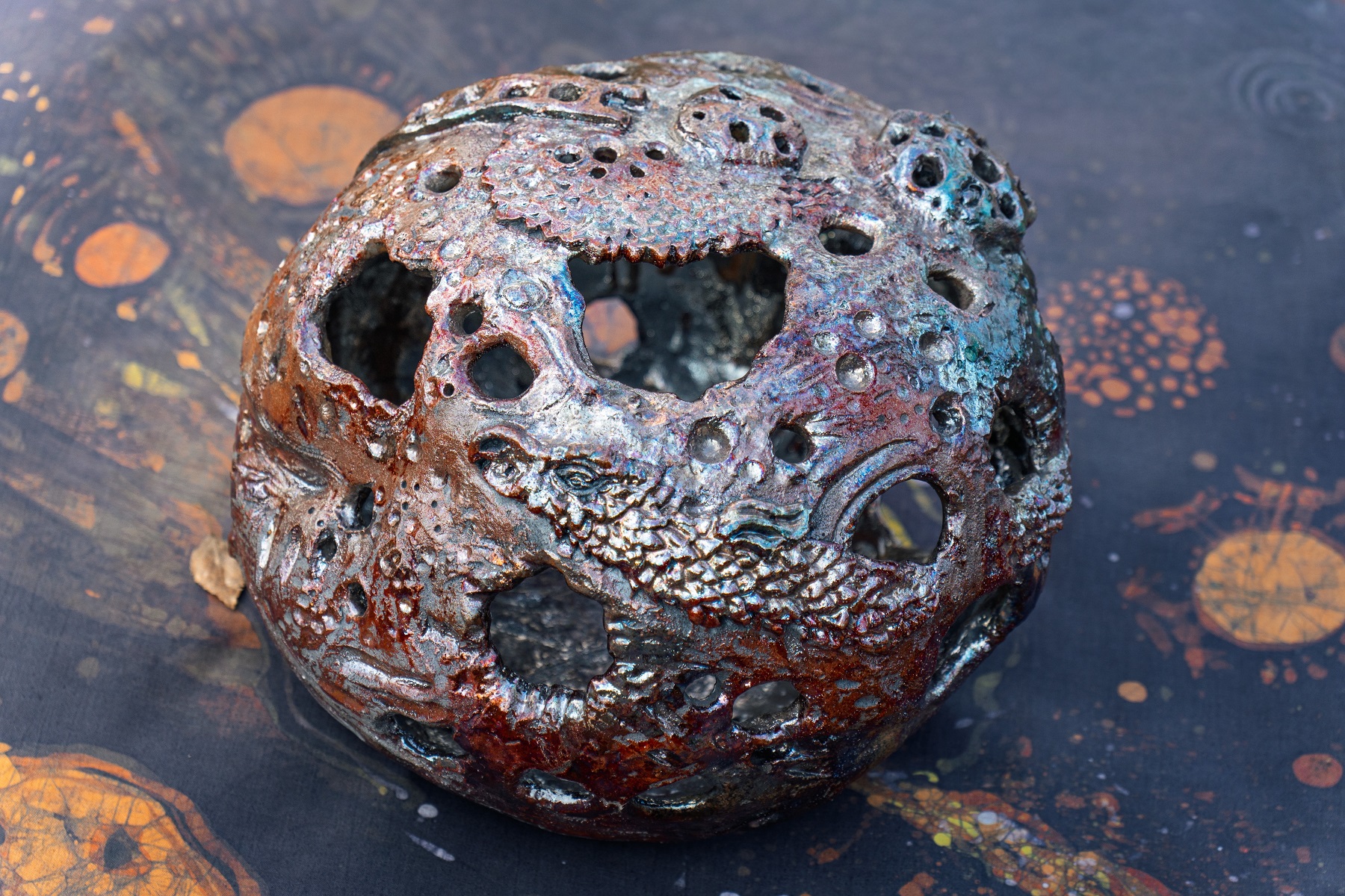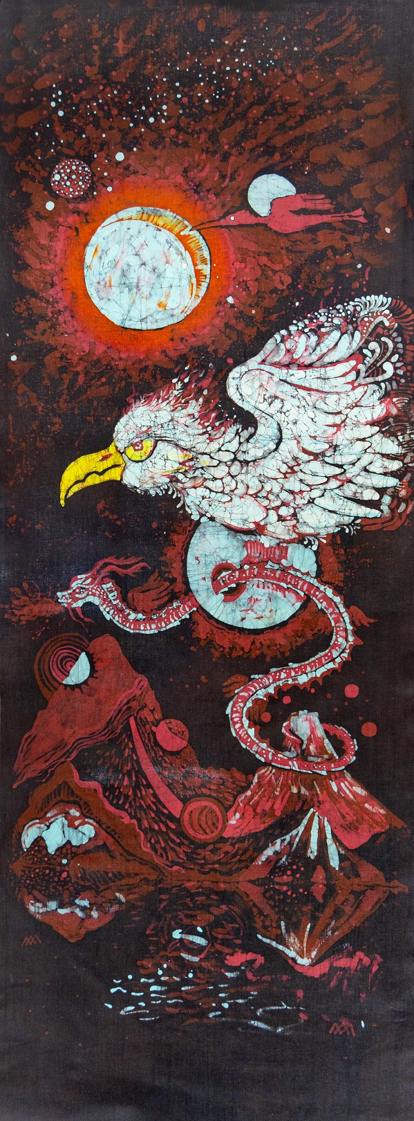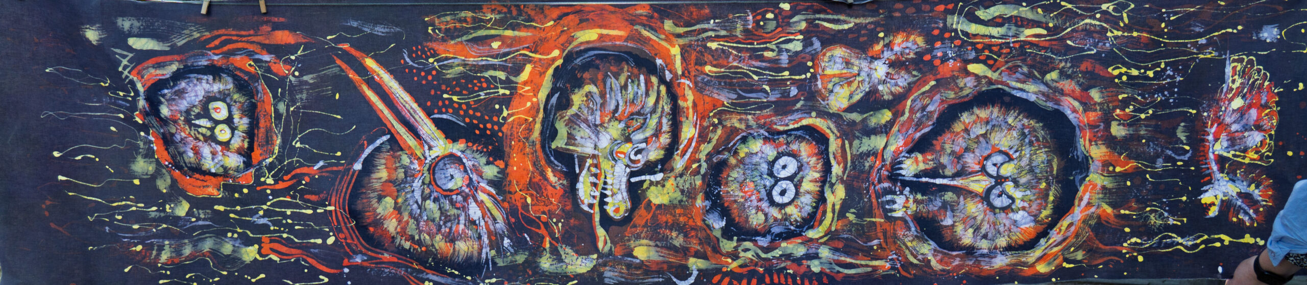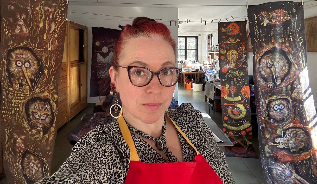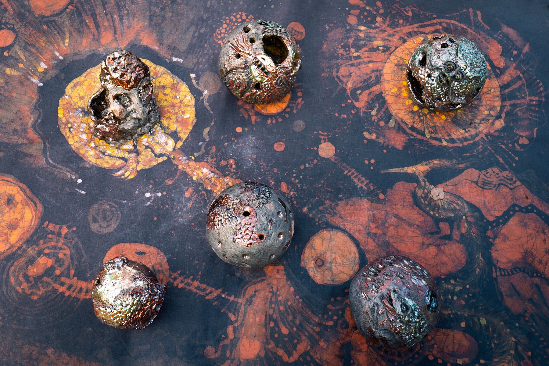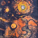 „Podróże międzygalaktyczne” to tajemnicza i barwna wystawa zabierająca widza w podróż przez fantastyczne światy. Artystka operuje różnorodnymi mediami, prezentując: batik, malarstwo, rysunek i ceramikę raku.